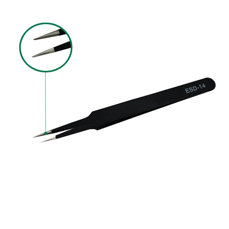 -- Пинцет изготовлен из антацидной стали, устойчив к коррозии, большому коэффициенту прочности, антистатическому, хорошей эластичности, антимагнитному.