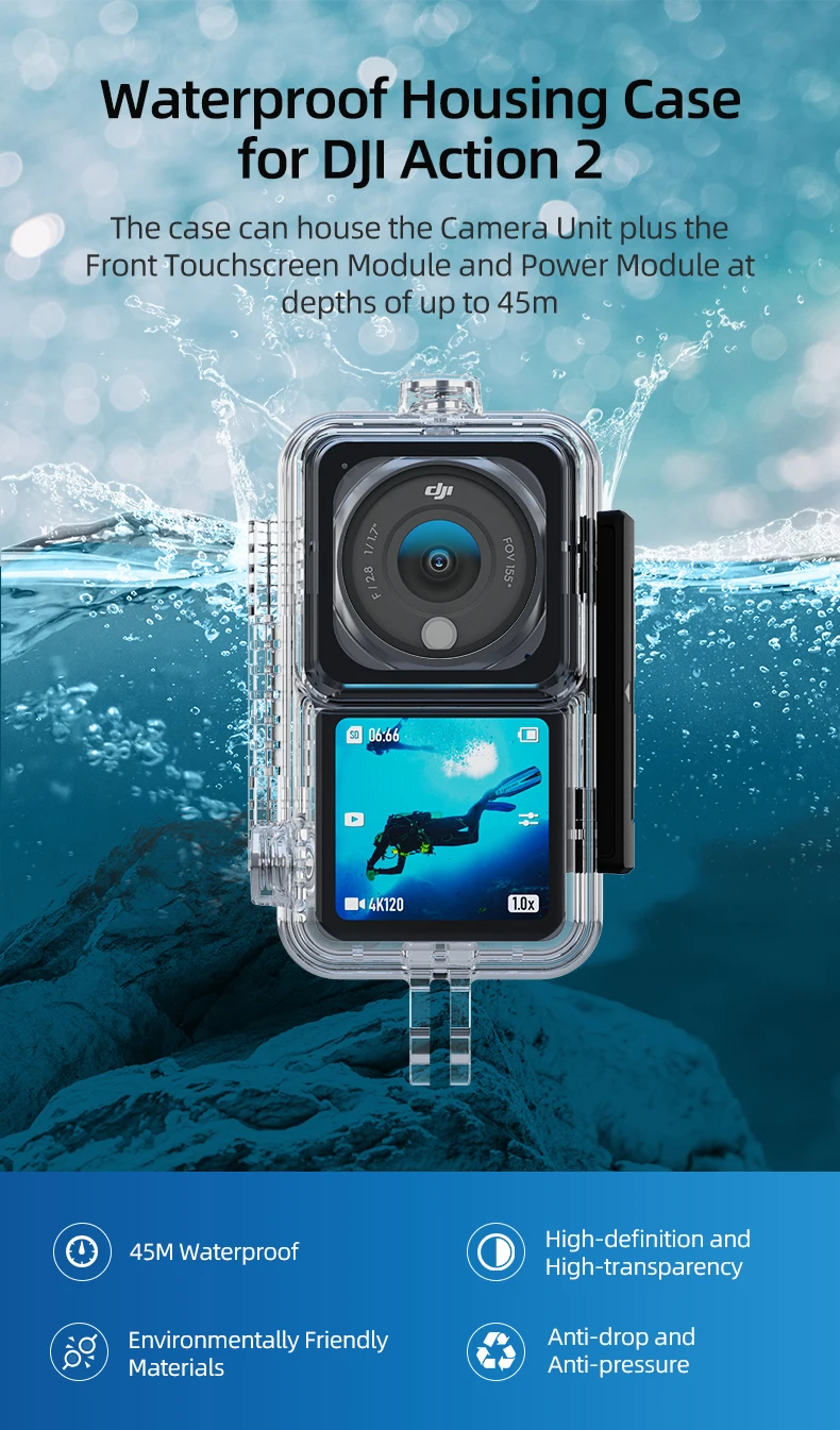 Водонепроницаемый чехол для спортивной камеры DJI Osmo Action 2, 45 м