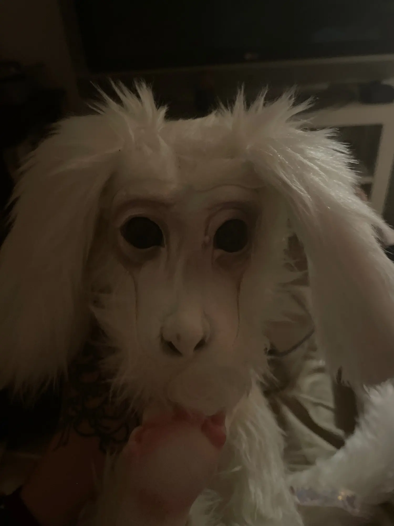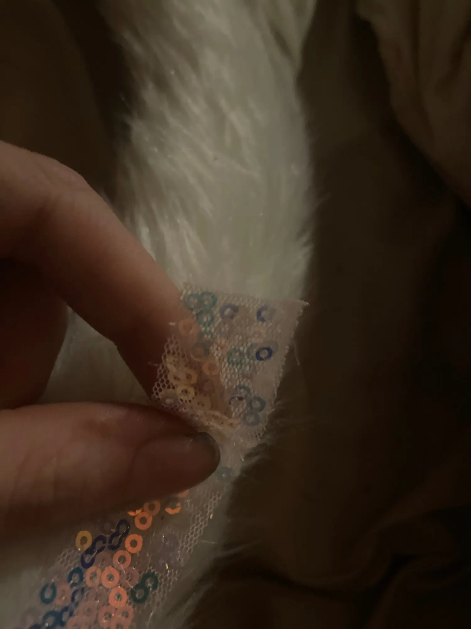 Мне очень понравилось, но качество плохое. 1) области на лице, где искусственный мех придает действительно грубый и не хороший переход, лицо действительно обтягивающее. 2) Он действительно жесткий, и положение ног/форма делают его действительно неудобным. Он не скручивается, как показано на любом из фотографий. 3) Задняя полоса-это лента, которая почти не приклеивается к меху. Кажется, что это не будет большим усилием для его удаления. Он должен был быть пришит вниз.