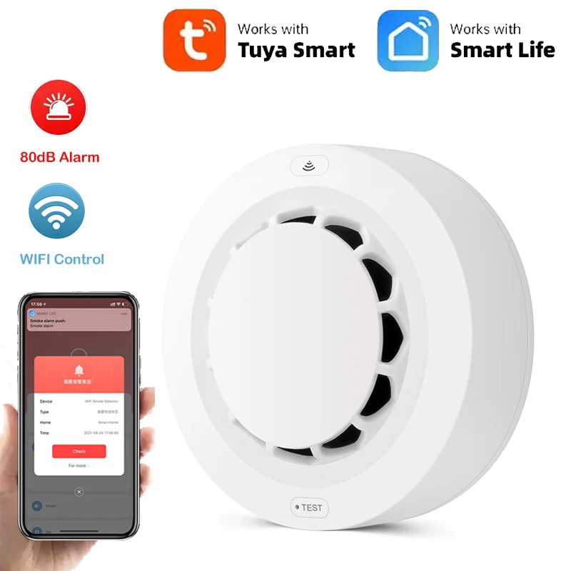 Умная дымовая сигнализация Tuya, Wi-Fi детектор дыма для домашней системы безопасности