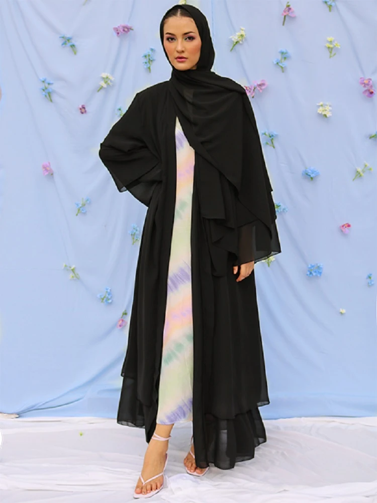 Шелковый шифоновый кардиган в мусульманском стиле, абайя, длинное п...