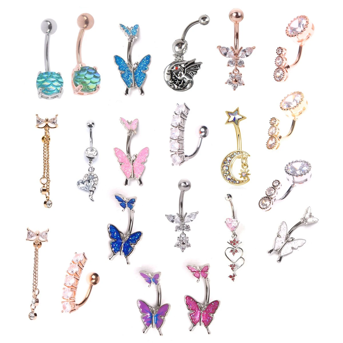 Разные типы 14 г золотой цвет нержавеющая сталь кольцо для пупка Цв...