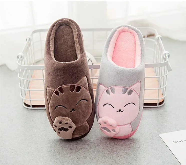 Женские зимние домашние тапочки, обувь с мультяшным котом, мягкая з...