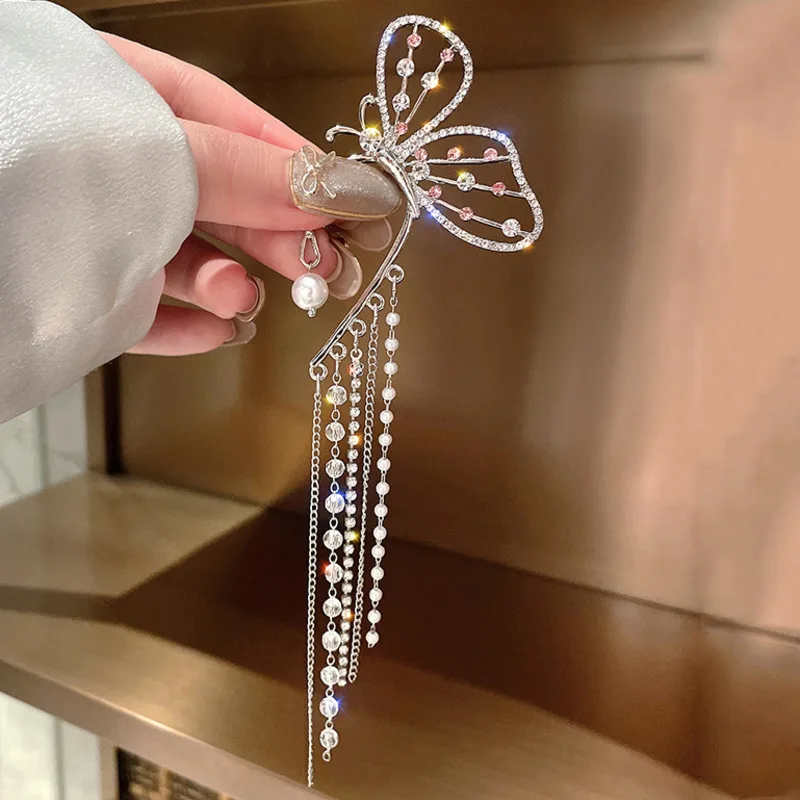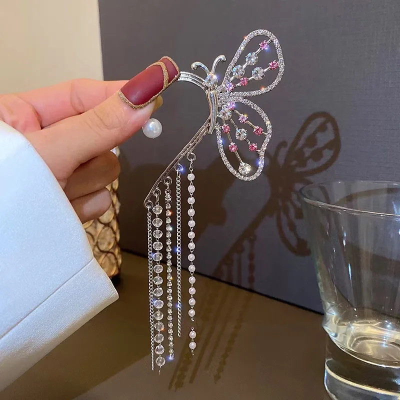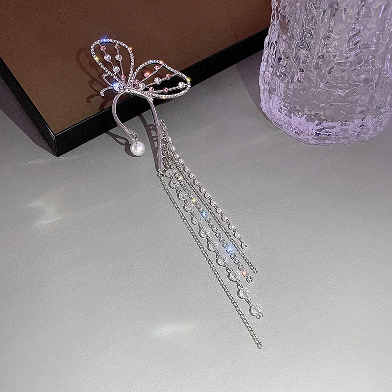 1 шт. модные серьги-клипсы с хрустальными бабочками, жемчужные бусины, манжеты для ушей, длинные кисточки, полые серьги для женщин, клипсы, ювелирные изделия, подарки