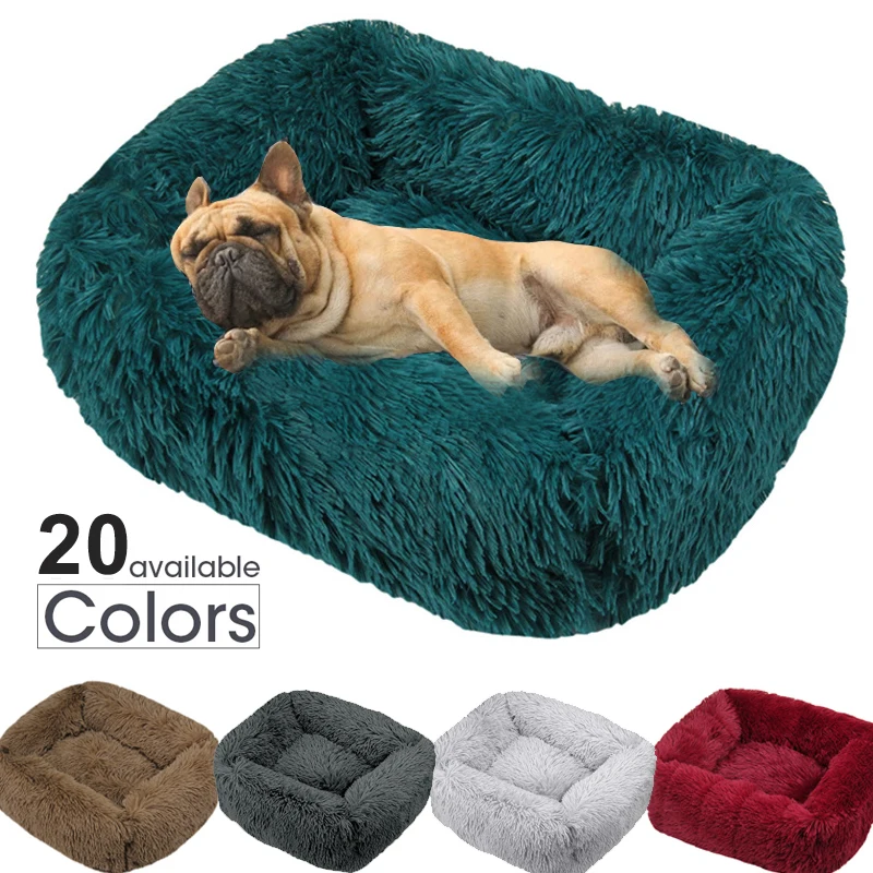 Квадратная кровать для собак, Длинные Плюшевые одноцветные кровати для домашних животных, кошачий коврик для маленьких средних и больших домашних животных, супер мягкие зимние теплые спальные коврики