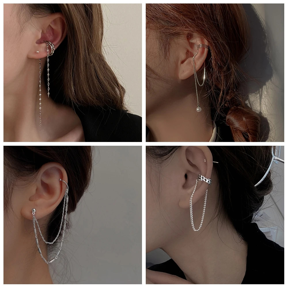 Новые модные серьги с двойной цепочкой серьги с кисточками серьги-клипсы для женщин и девушек Длинные серьги-каффы без проколов богемный подарок