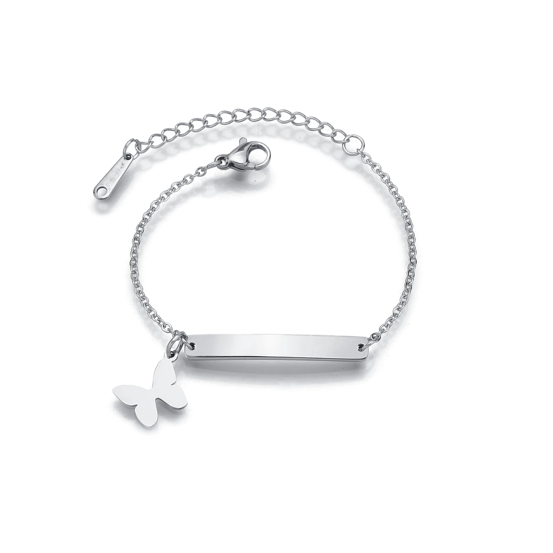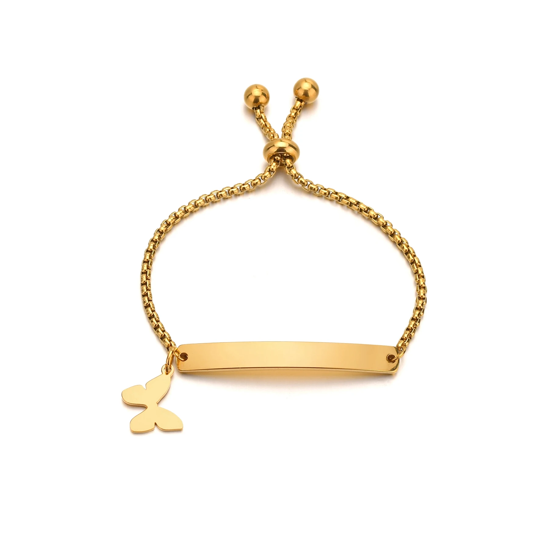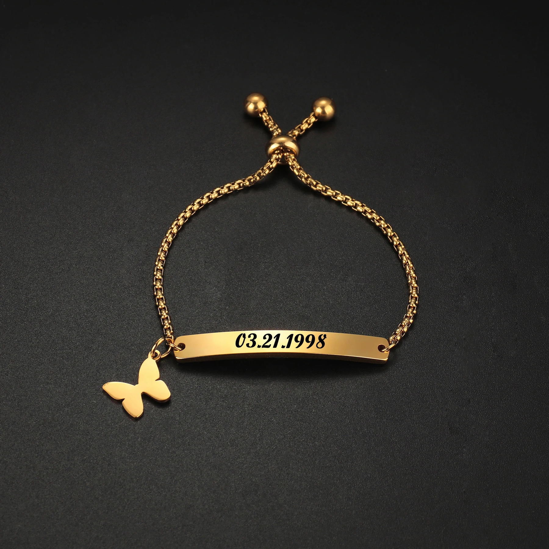 Название: браслет Acheerup Engrave Name Baby ID с персонализированной бабочкой из нержавеющей стали золотистого цвета, Толстая кубинская цепочка для новорожденных, подарок для детей