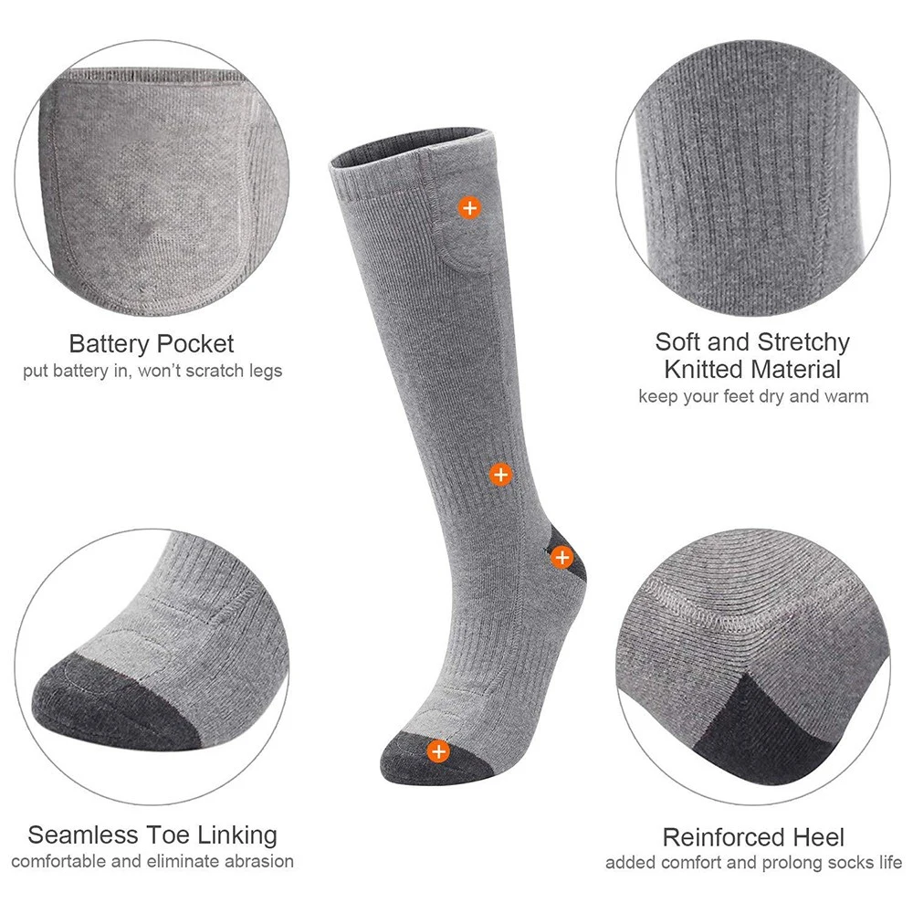 -Носки с электрическим подогревом: Используйте внешний аккумулятор для нагрева носков для проектов в холодную погоду или зимних видов спорта на открытом воздухе, зимней охоты на лыжах, езды на велосипеде и мотоциклах для сохранения тепла.