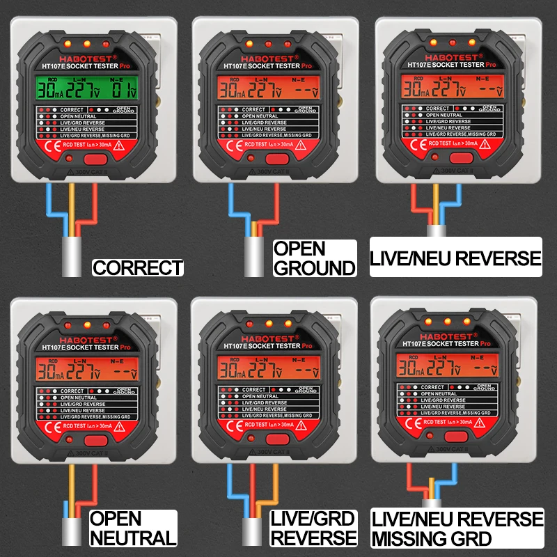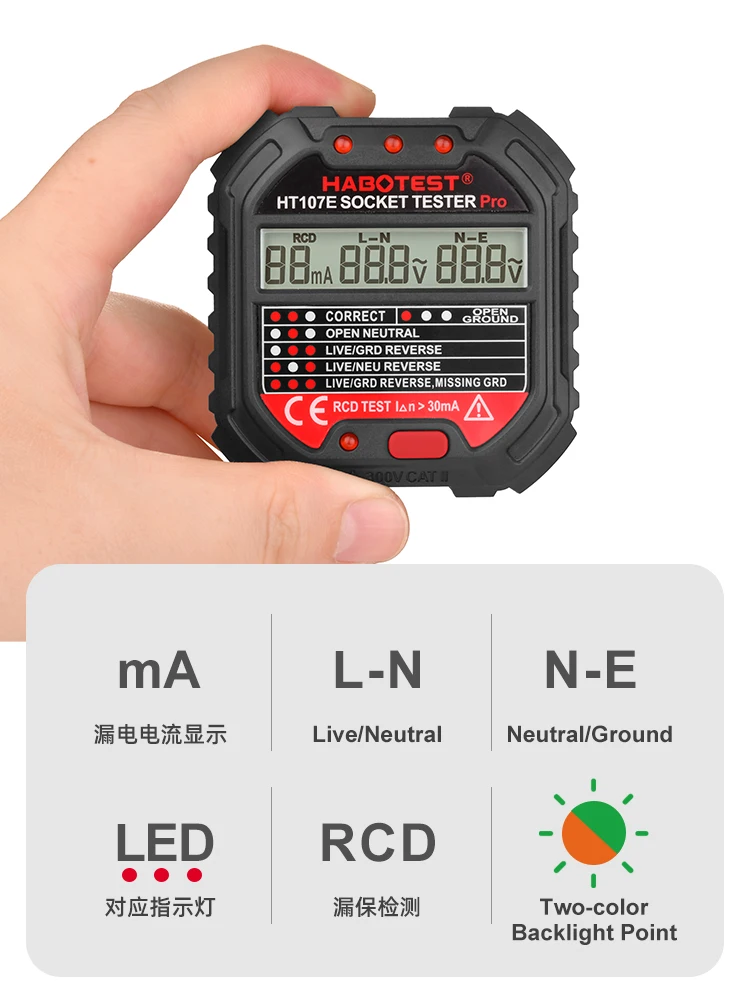 Умный тестер розеток HABOTEST, цифровой детектор розеток с европейс...
