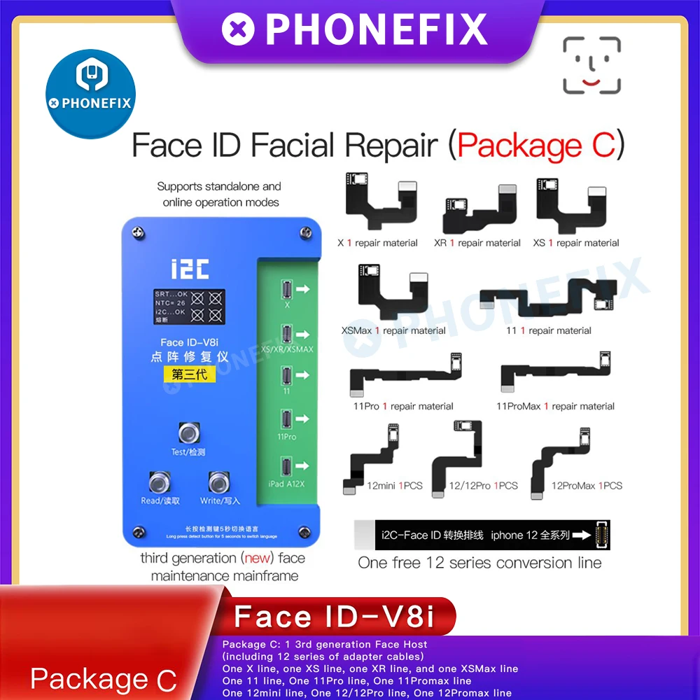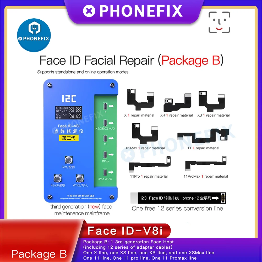 Детектор для ремонта точечной матрицы i2C IFace-V8i 3rd Face для iPhone X-12Pro Max Face ID, замена точечного матричного кабеля, программатора