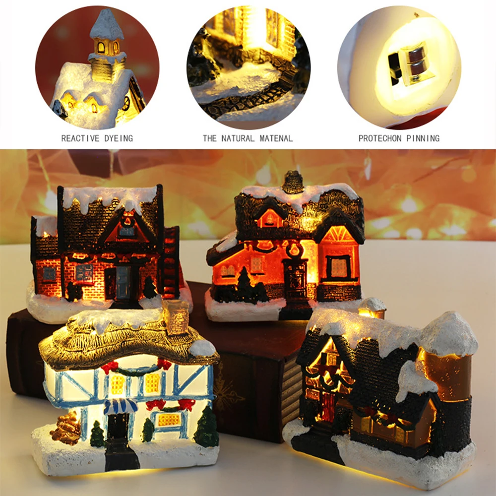 Светодиодные огни, рождественские деревенские дома, рождественские Городские пейзажи, настольные украшения, аксессуары для рождественских кукол, Ландшафтные украшения
