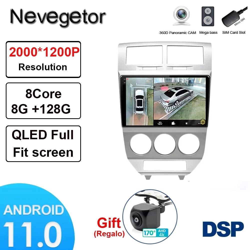 Для 07-10 dodge caliber автомобильный умный мультимедийный видеоплеер Калибр радио GPS навигация Android 8. 1 8-ядерный 6 + 11,0G памяти