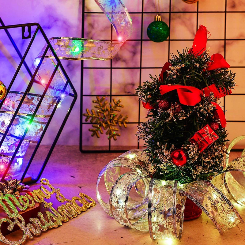 25 м двухслойные гирлянды, рождественские ленты, банты со светодиод...