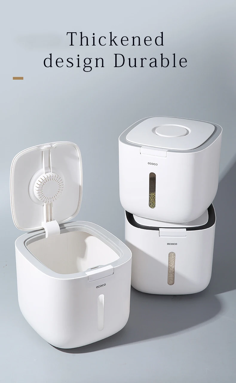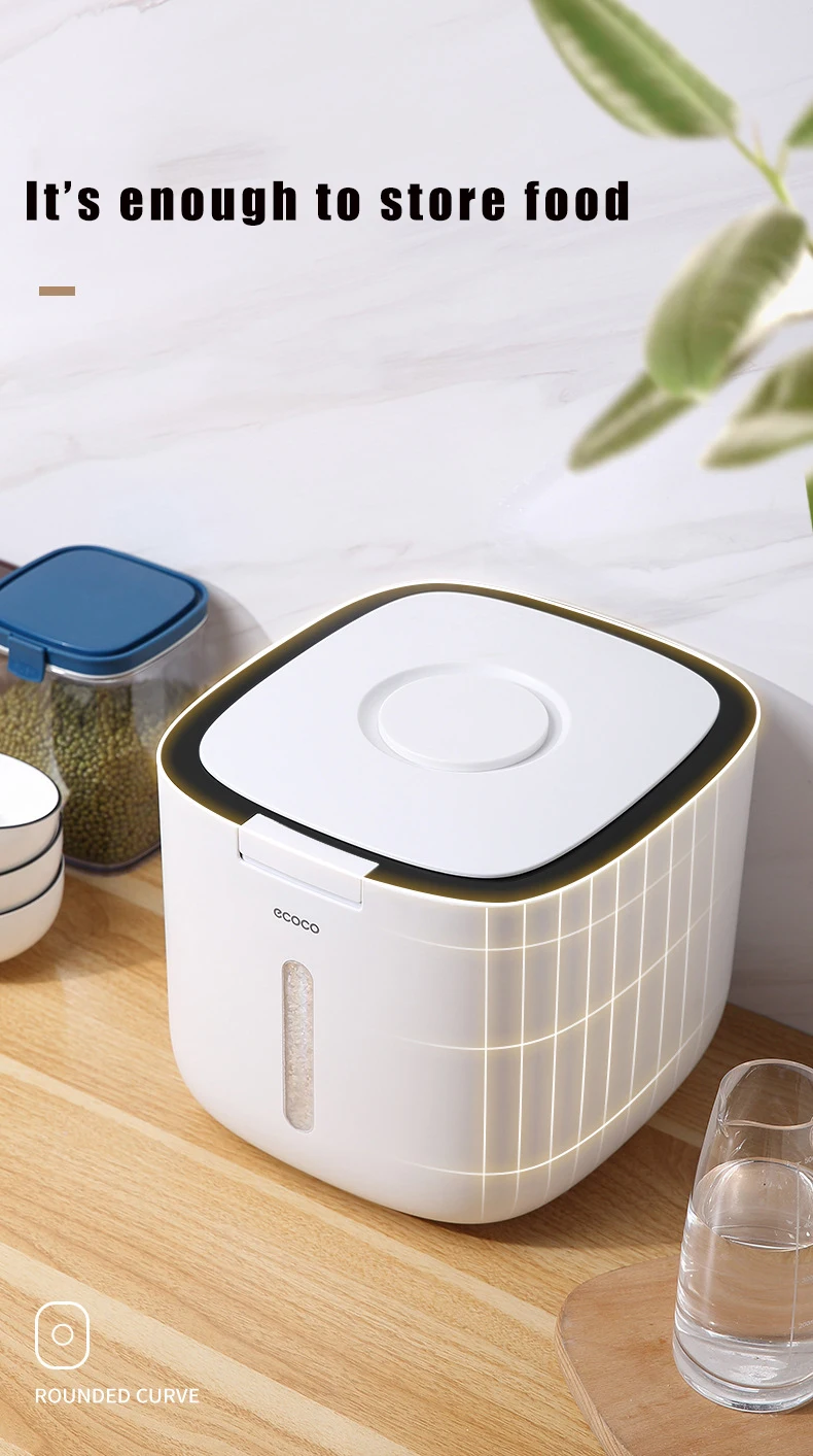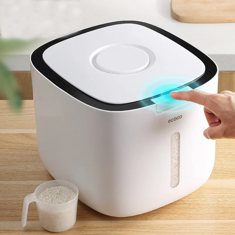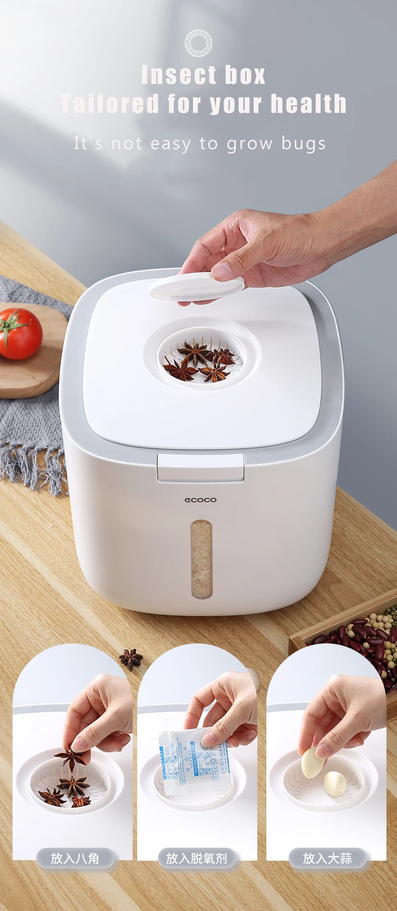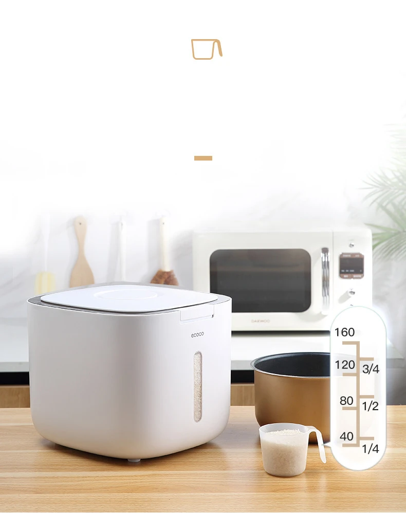 Автоматическое открытие ведра для риса, защита от насекомых и Влагонепроницаемая конструкция, визуальный дизайн, большой емкости небольшого корпуса, силиконовое уплотнение, водонепроницаемый и влагостойкий, ящик для материала от насекомых, портативный и съемный, хранение еды, достаточно, большая откидная крышка на 90 °, конструкция с двойным силиконовым уплотнением, автоматическое открытие и пряжка, Для достижения трех слоев эффективной герметизации, водонепроницаемости и влагостойкости. Дизайн большой емкости, легко загружать 20 косточек риса, 160 мл, мерный стакан, толстый дизайн, прочный.