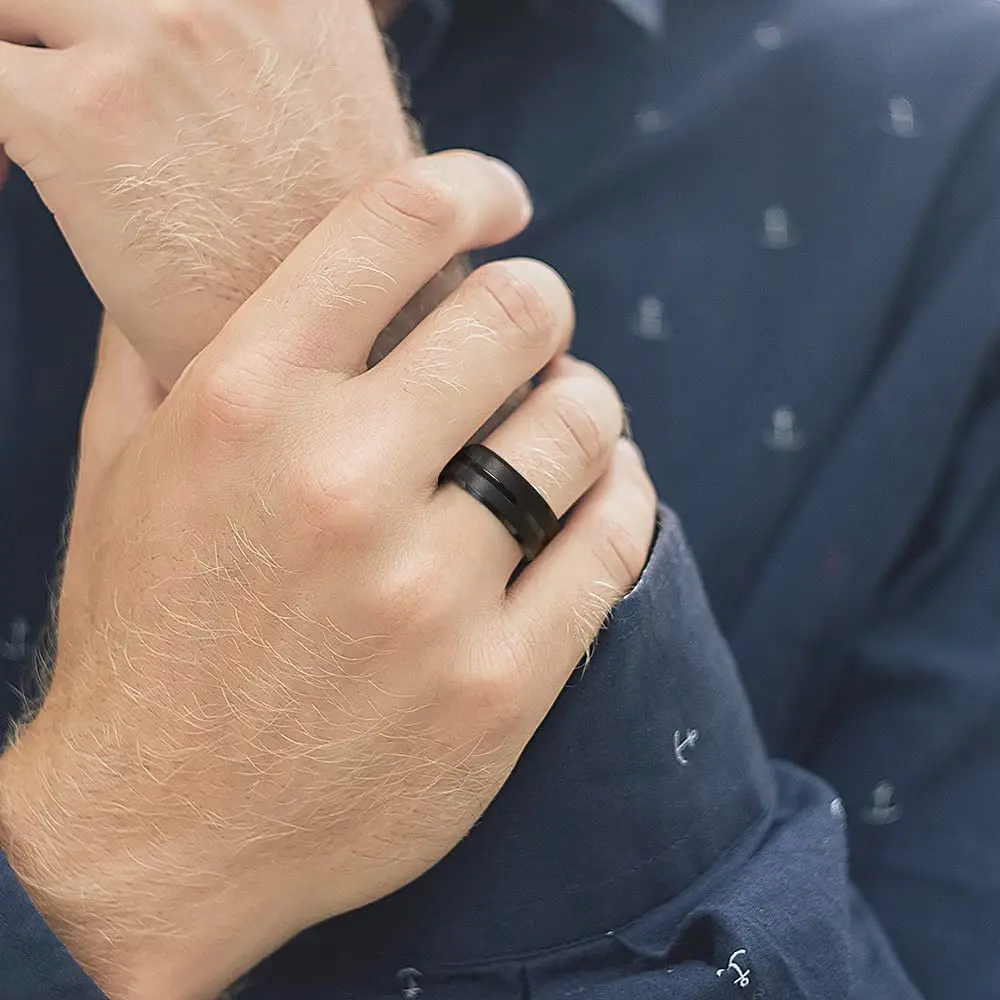 Item Style19Men's Black Groove Beveled Edge Tungsten Carbide Ring