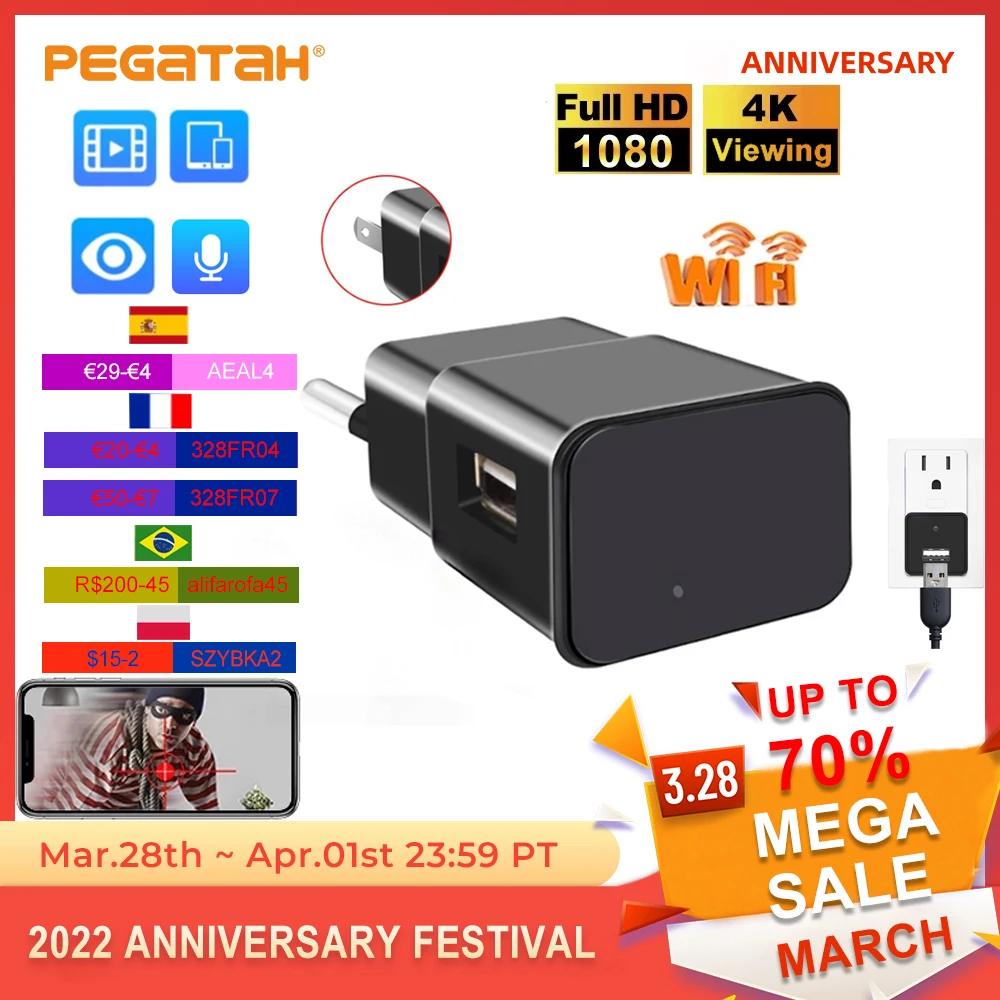 Мини-камера видеонаблюдения 1080P Беспроводная с зарядным устройством и USB-разъемом