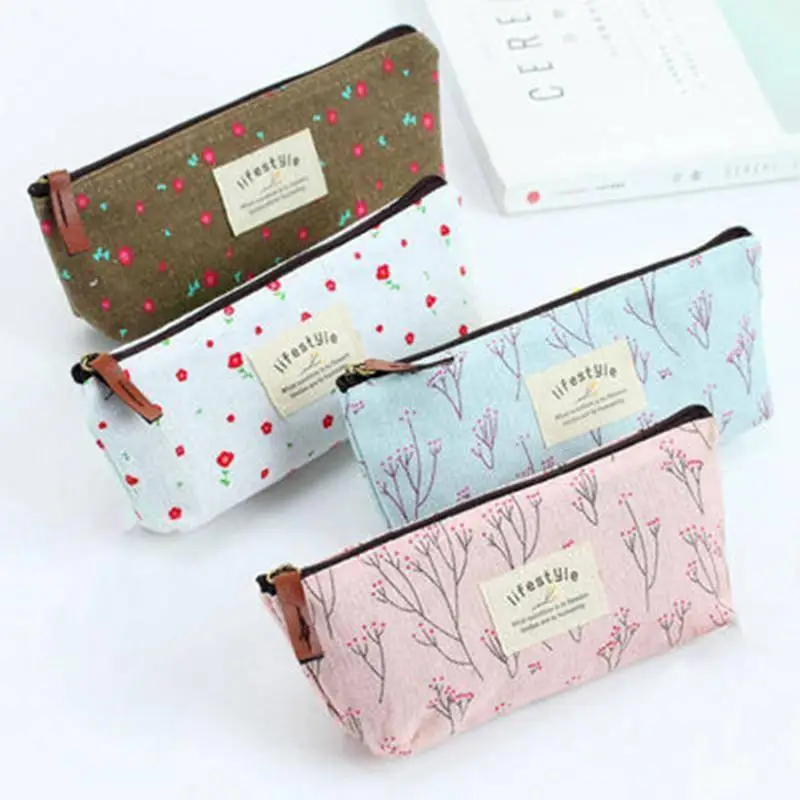 Канцелярские принадлежности, чехол, пасторальный цветочный принт, пенал, мягкая текстура, студенческий канцелярский чехол на молнии, пенал для детей, 4 шт.
