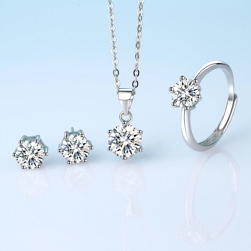 Женский ювелирный комплект из колье, серёг и кольца, из серебра 925 пробы