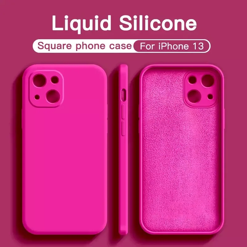 Мягкий чехол с квадратной рамой из жидкого силикона для iPhone 13 1...