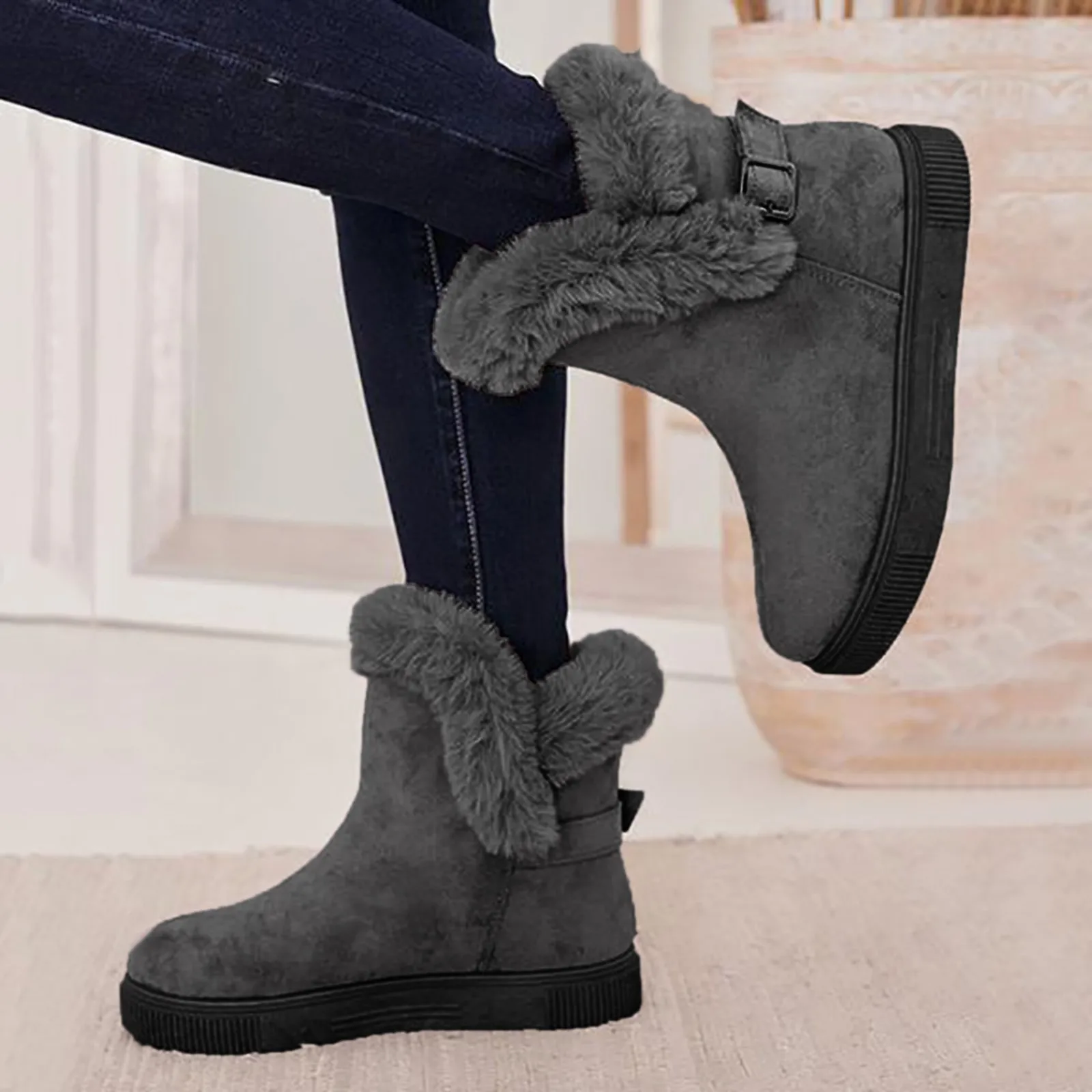 Модные зимние плюшевые женские ботинки, однотонные повседневные ботильоны из флока, дышащие слипоны на танкетке, искусственная кожа 2021