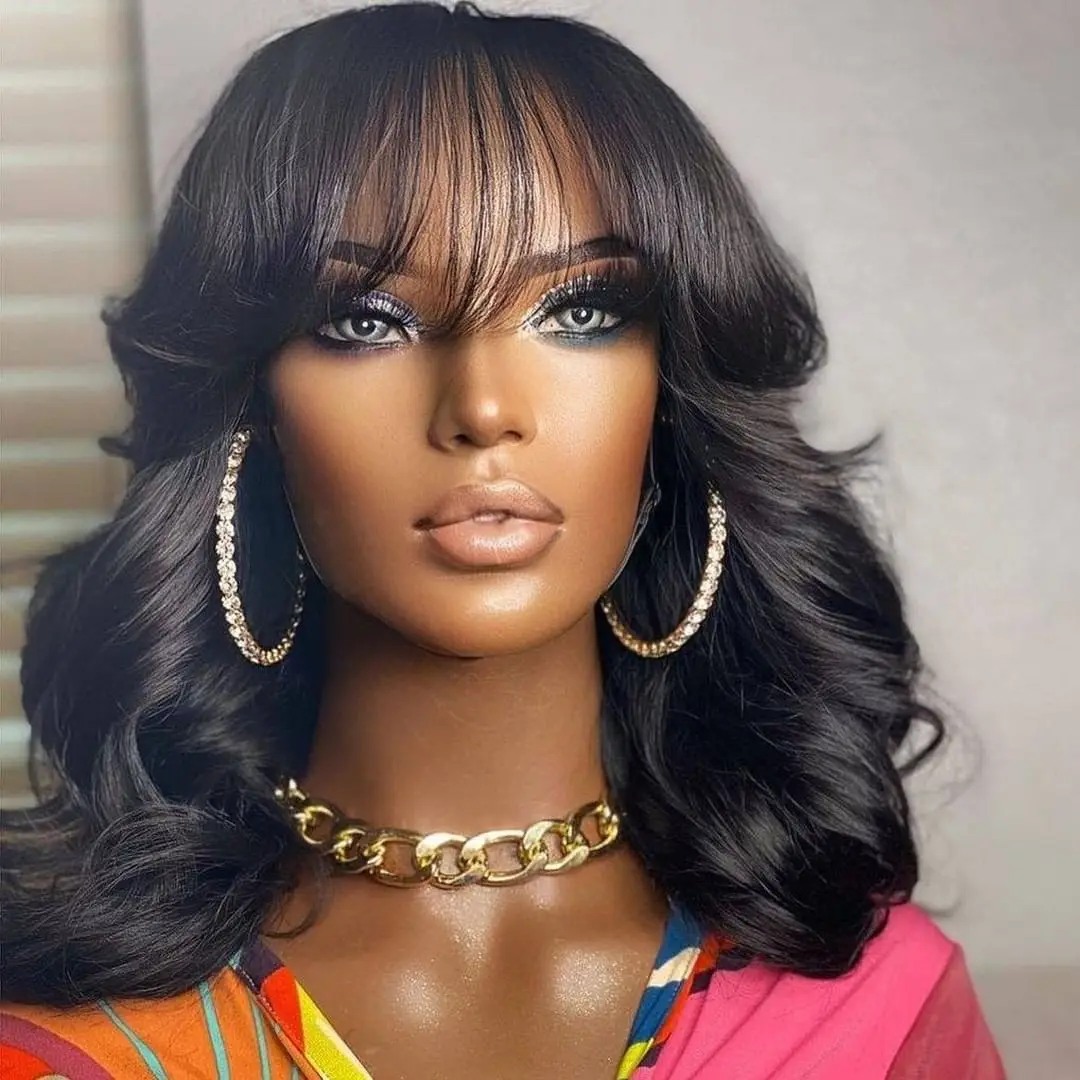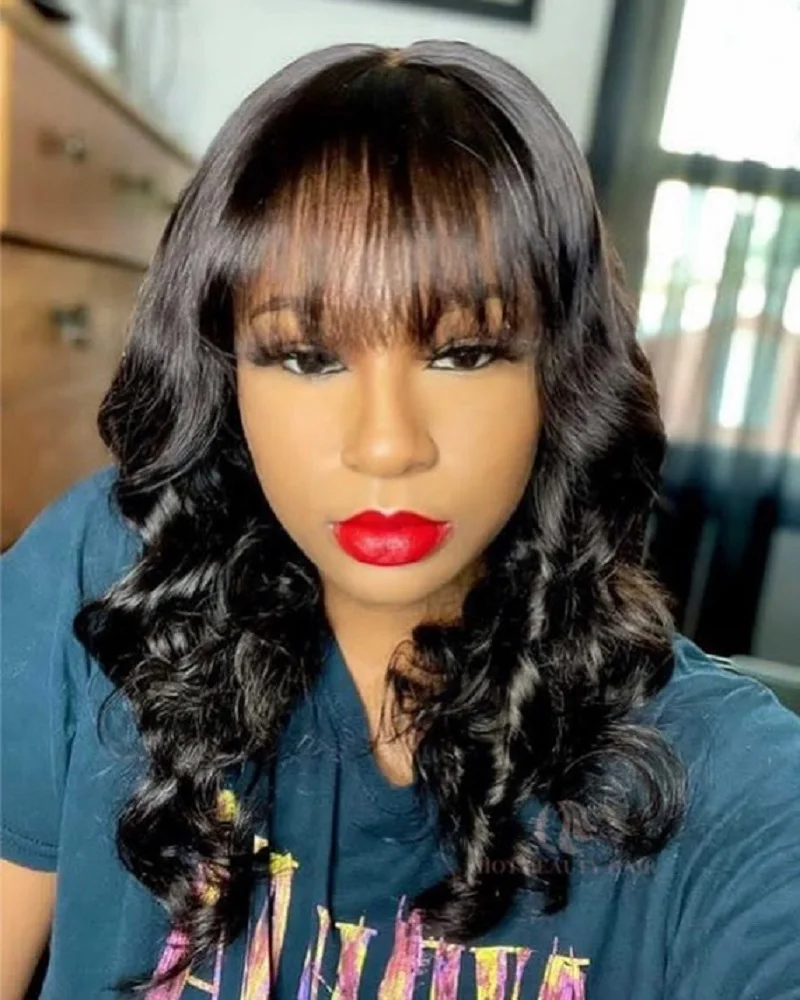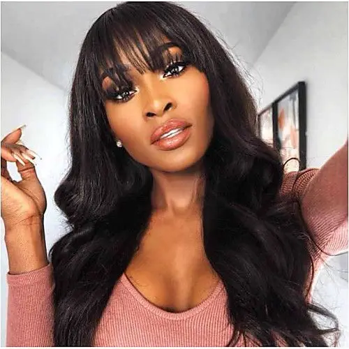 Парики из человеческих волос с челкой, парик полностью машинной работы, бразильские волнистые парики, натуральные человеческие волосы, парики для черных женщин, без клея, Реми