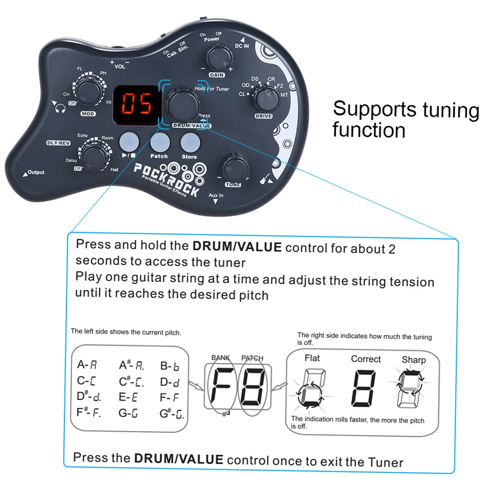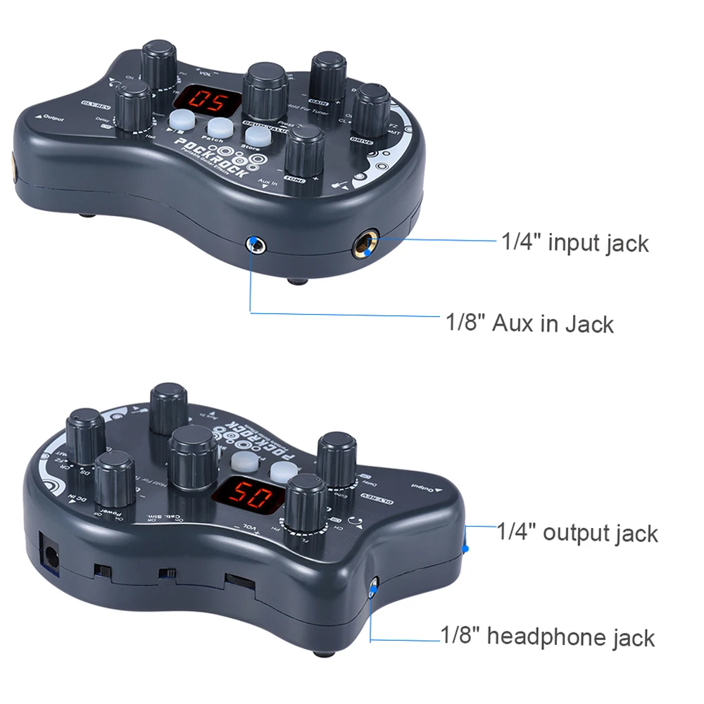 Многофункциональный процессор PockRock для гитары, портативная педаль для создания эффектов, 15 типов эффектов, 40 барабанных ритмов, Функция настройки с адаптером питания