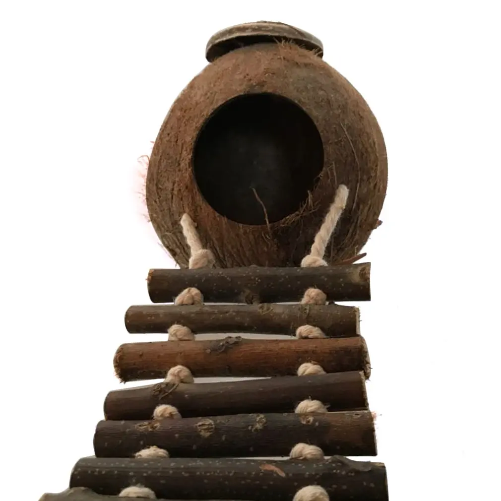 Новый удобный милый дизайн, натуральная Кокосовая раковина с лестницей, домик-гнездо для птиц, малый размер, ПЭТ-попугаи, наконечники, воробей, клетка