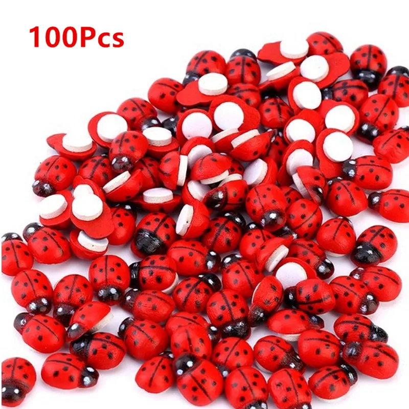 100 шт. в упаковке, деревянная божья коровка, божья коровка, стикер, дети, окрашенные, клейкая задняя часть, сделай сам, ремесло, домашние вечерние наклейки, украшение