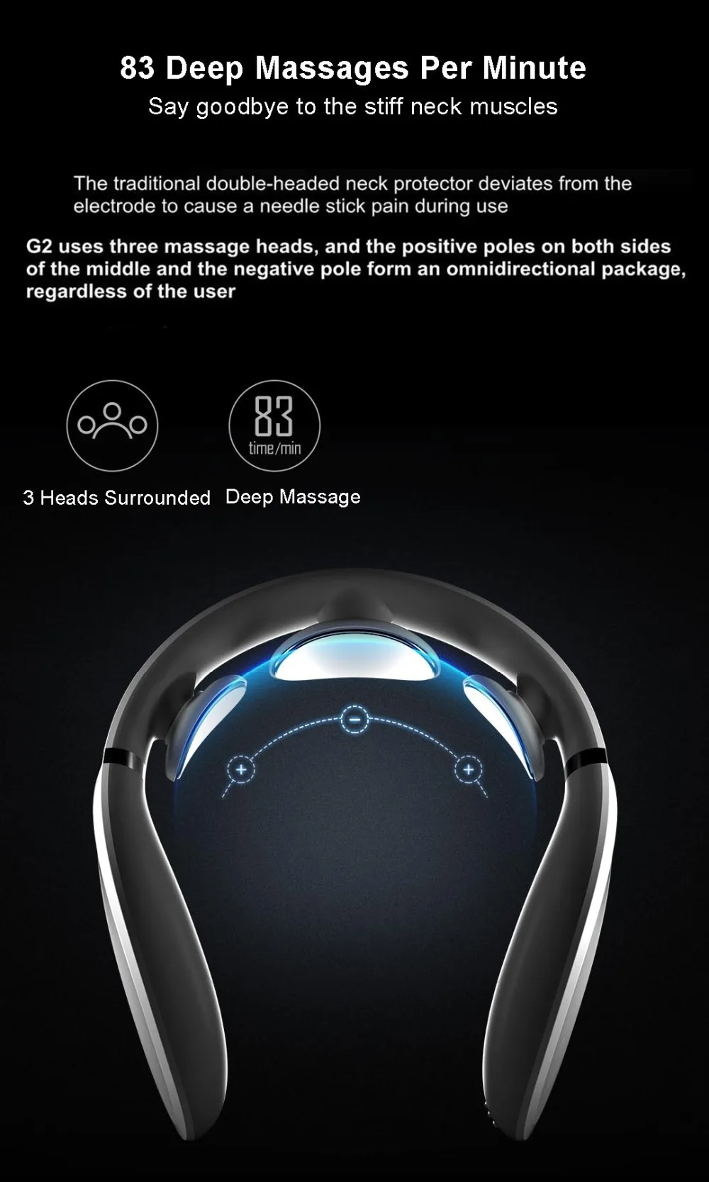 -83 глубоких массажа в минуту, 3 обертывания вокруг, глубокий массаж шеи для большего количества областей.