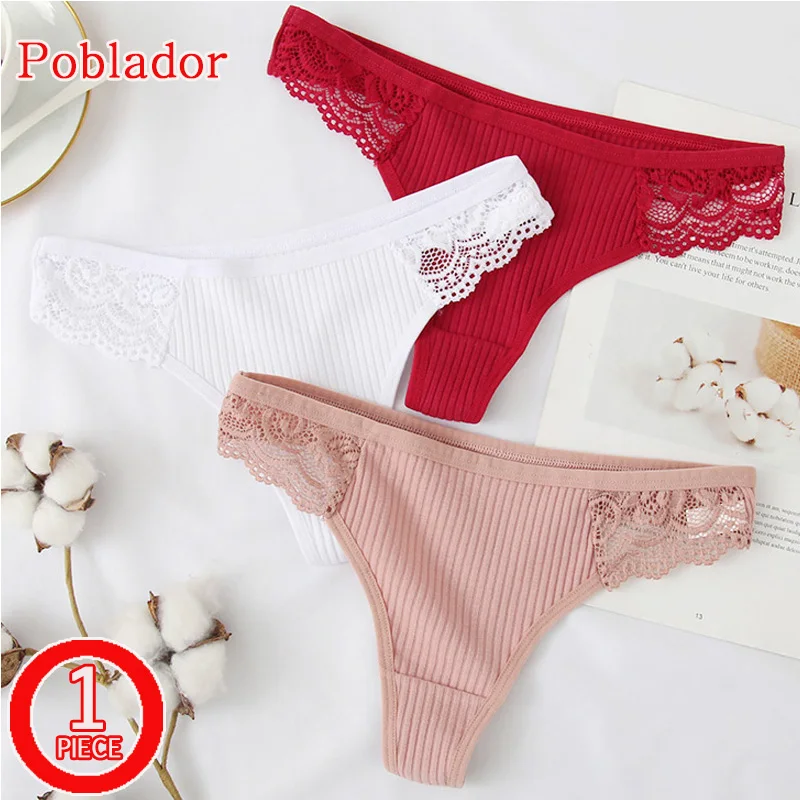 Сексуальное женское хлопковое нижнее белье Бриджи бесшовные однотонные удобные кружевные стринги с низкой посадкой женское интимное T-образное нижнее белье