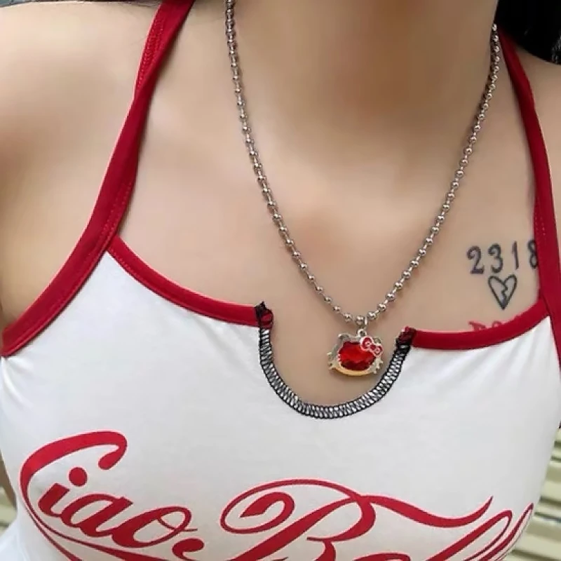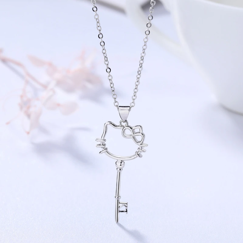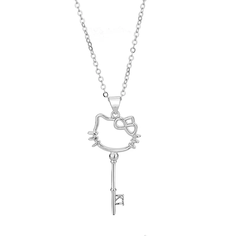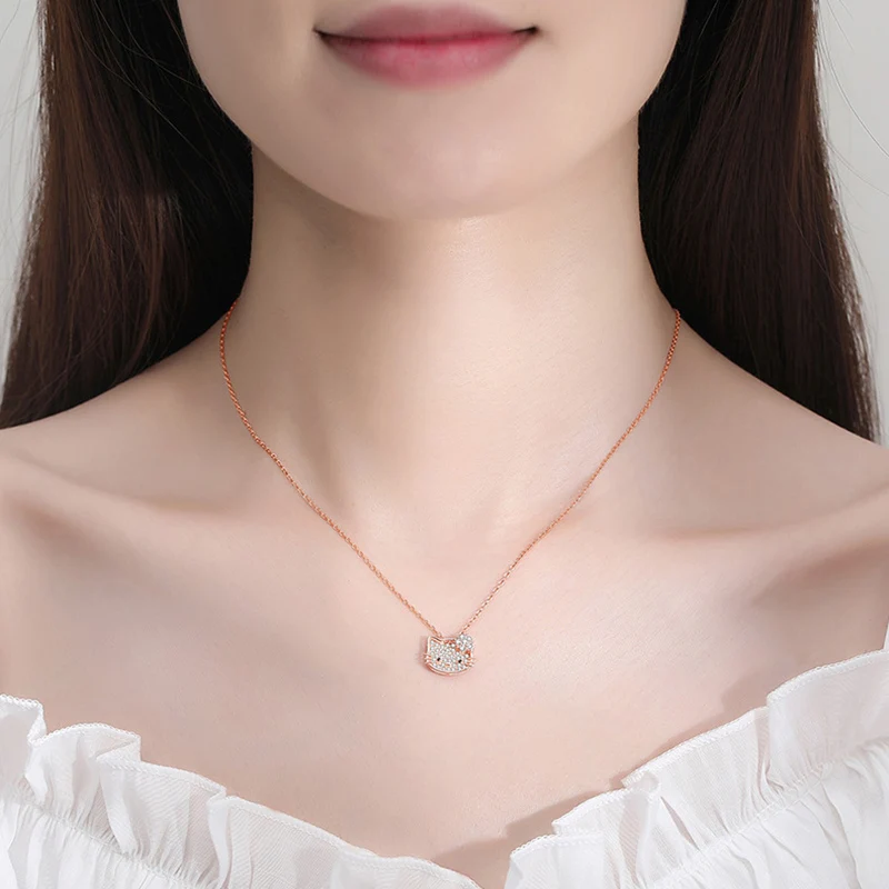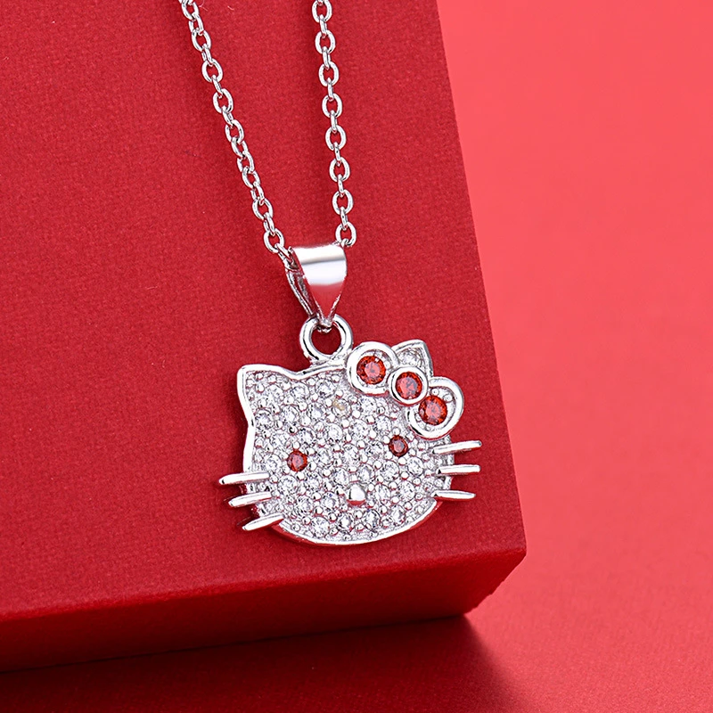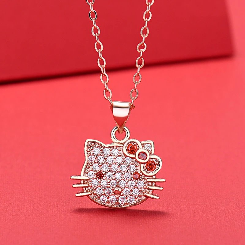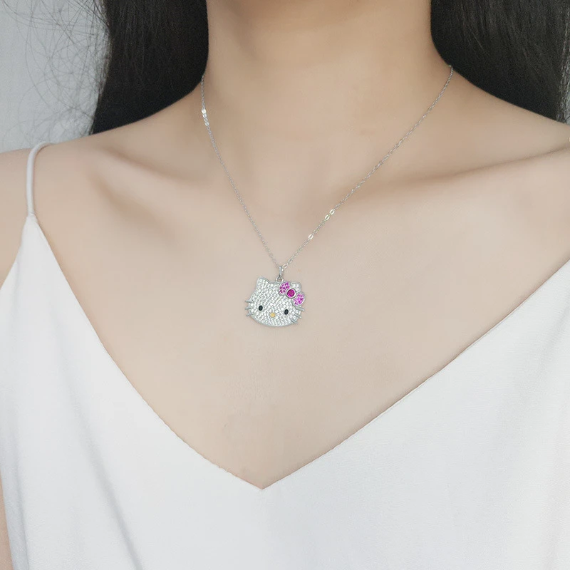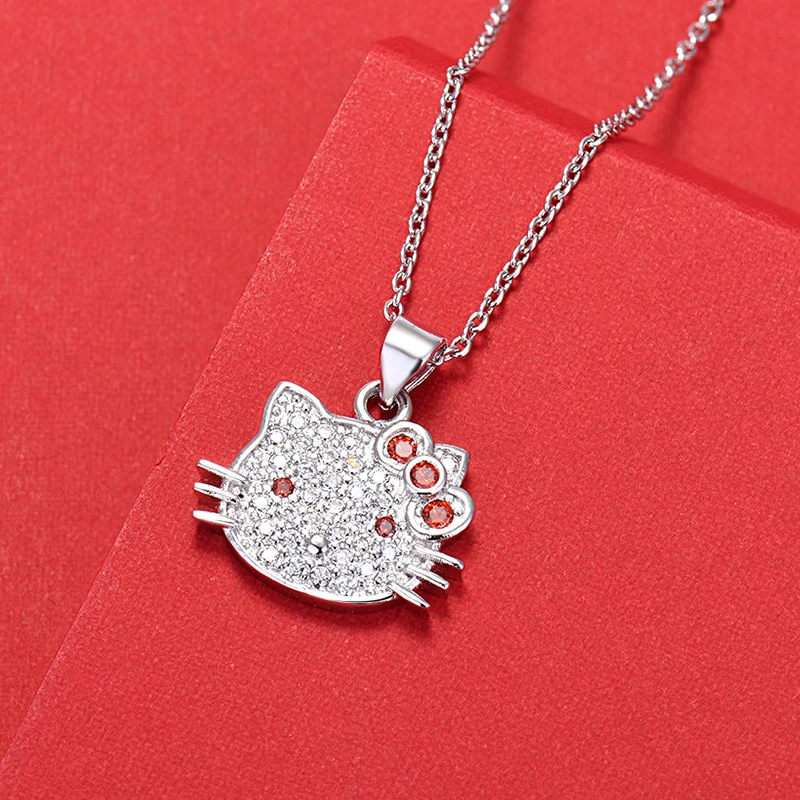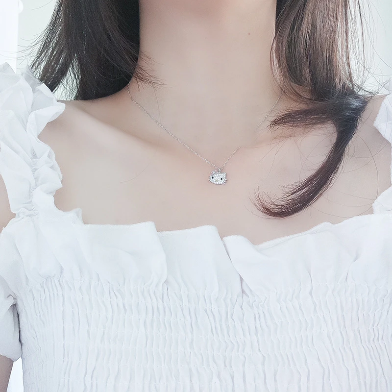 Kawaii Kitty стразы ожерелья с бантами романтичные девушки Hello Kt кошка со стразами Подвеска в области ключицы Индивидуальные ювелирные изделия на цепочке для свитера