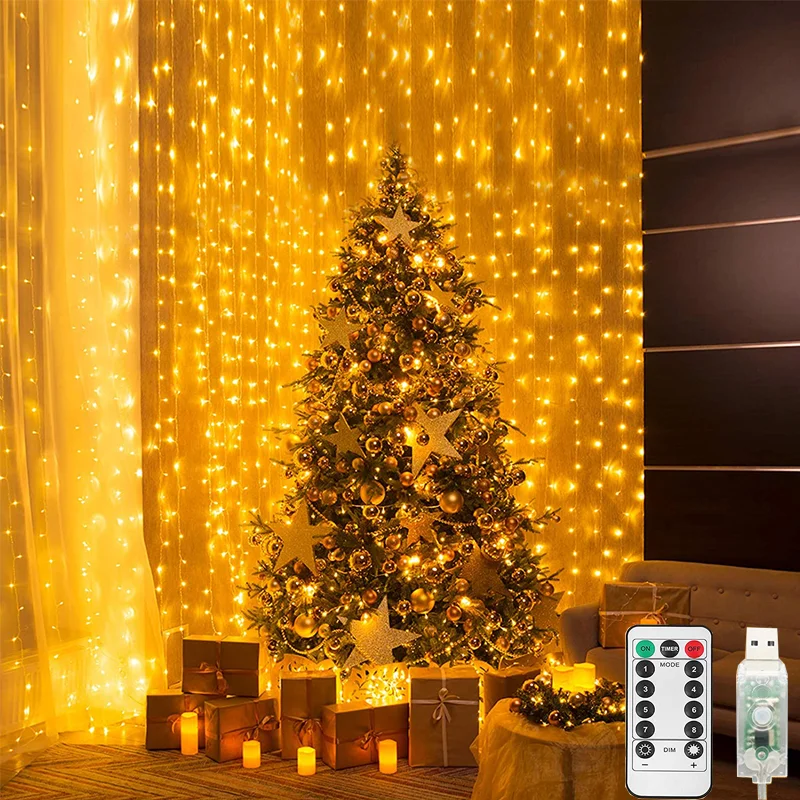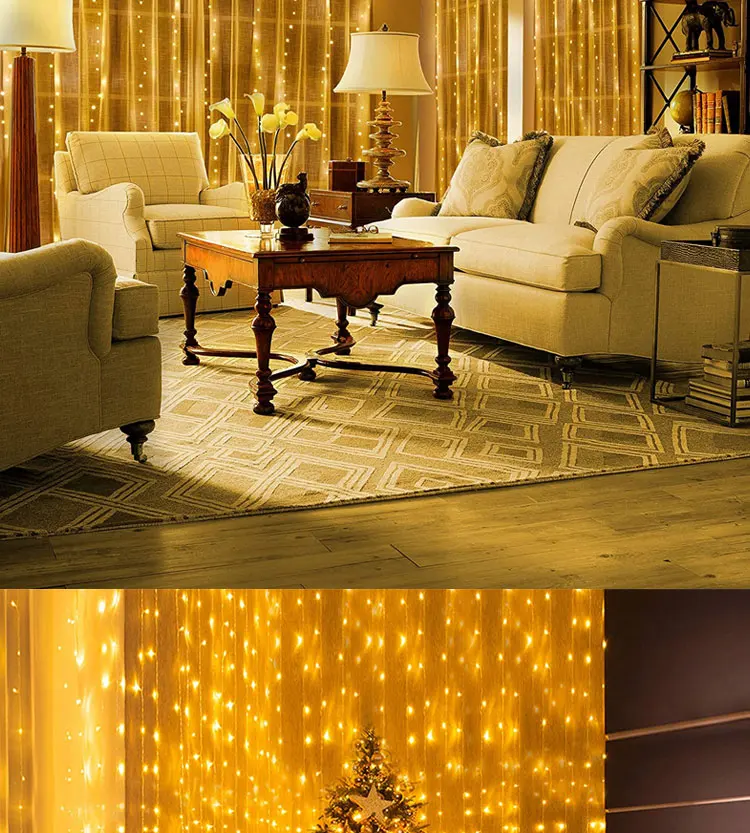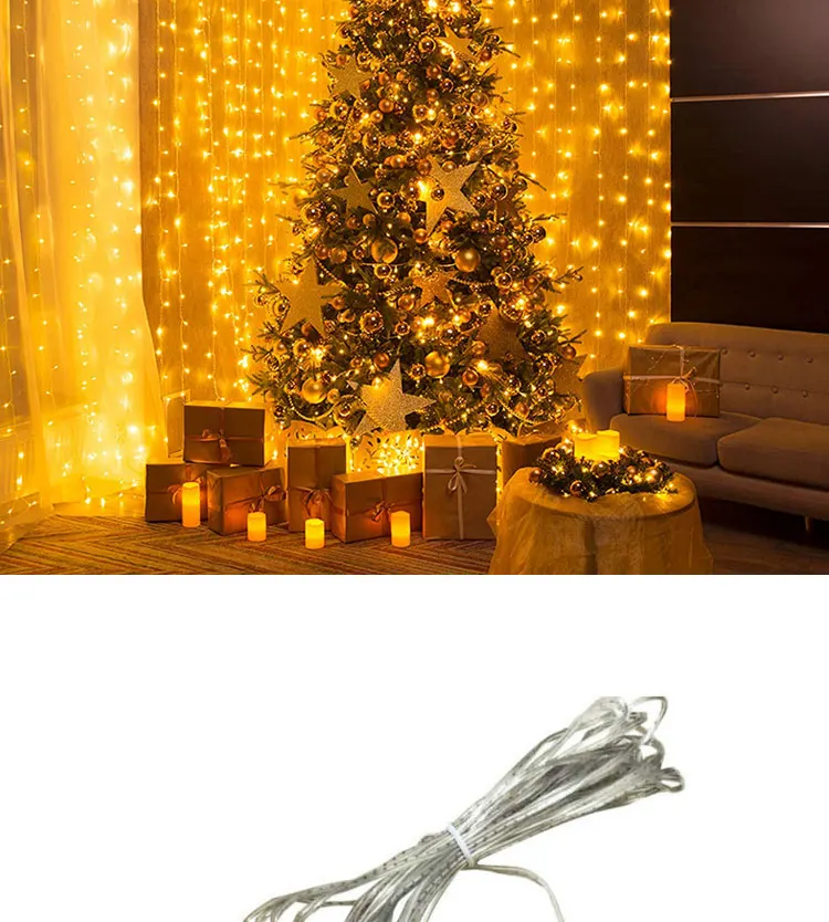 СВЕТОДИОДНАЯ Гирлянда для занавесок с дистанционным управлением, Рождественская, свадебная, праздничная, новогодняя сказочная лента для украшения семейных занавесок