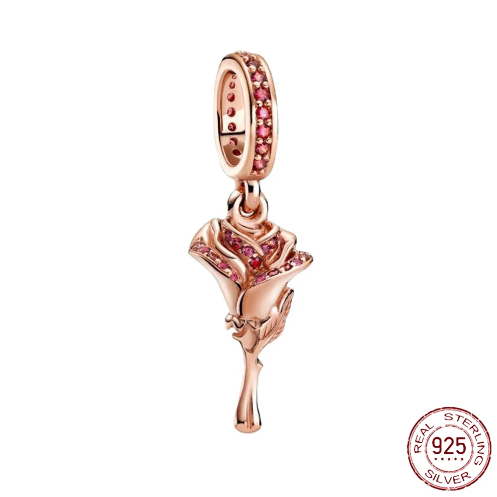 Женский кулон из серебра 925 пробы, с розовой маргариткой