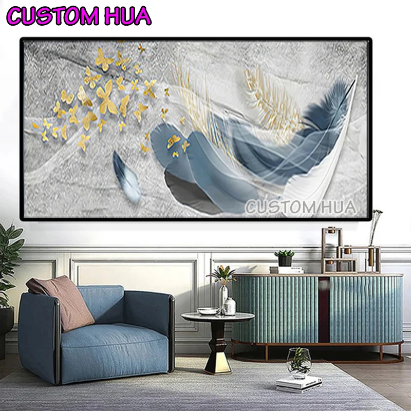 Алмазная живопись большого размера TT6045, квадратная круглая вышивка с абстрактными перьями, бабочками, 5D, для творчества, вышивка крестиком