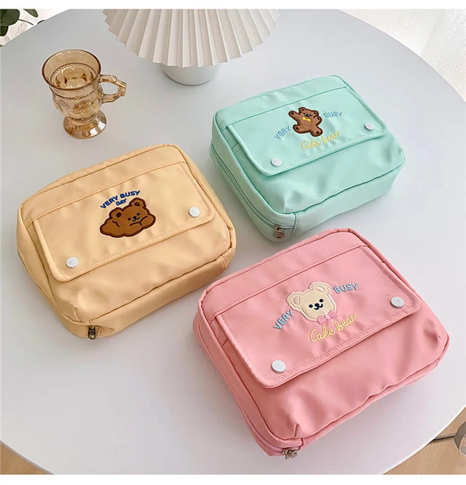 Kawaii Bear Пастельная сумка для хранения, милый большой вместительный чехол для карандашей, сумки для хранения ручек, водонепроницаемый органайзер для косметики для школьников и студентов