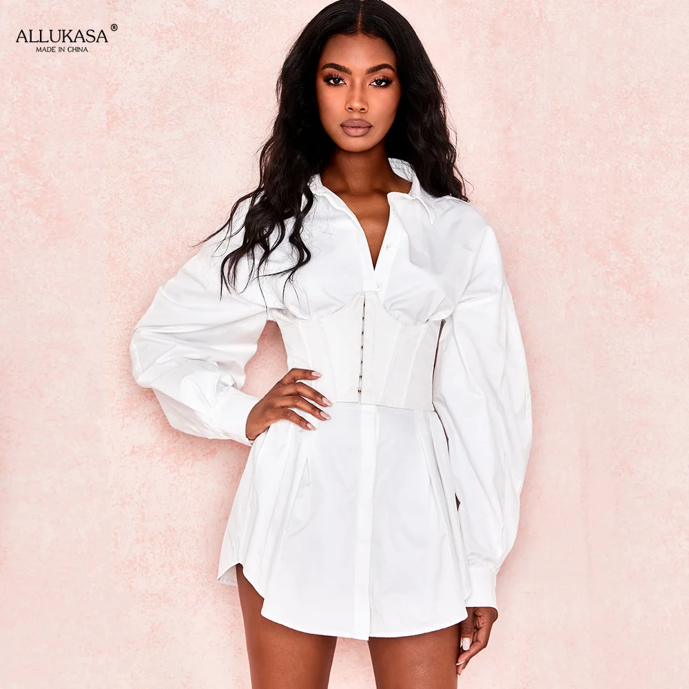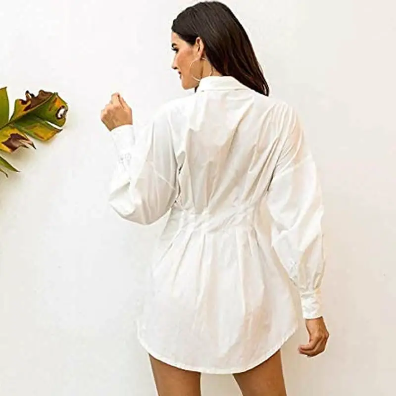 Женское однобортное платье с отложным воротником, белое повседневно...