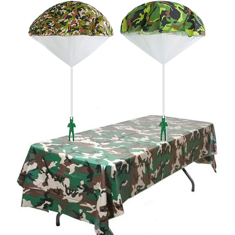 Вечерние камуфляжные принадлежности, армейская пластиковая скатерть, военный парашют на день рождения для детей, для мальчиков и девочек