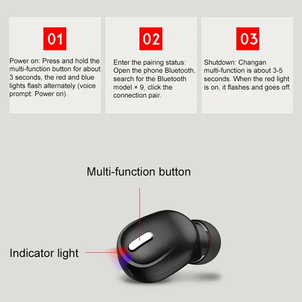 Мини-наушники X9 BT 5,0, беспроводные мини-наушники, спортивные стереонаушники, гарнитура с микрофоном для IPhone, Xiaomi, Samsung