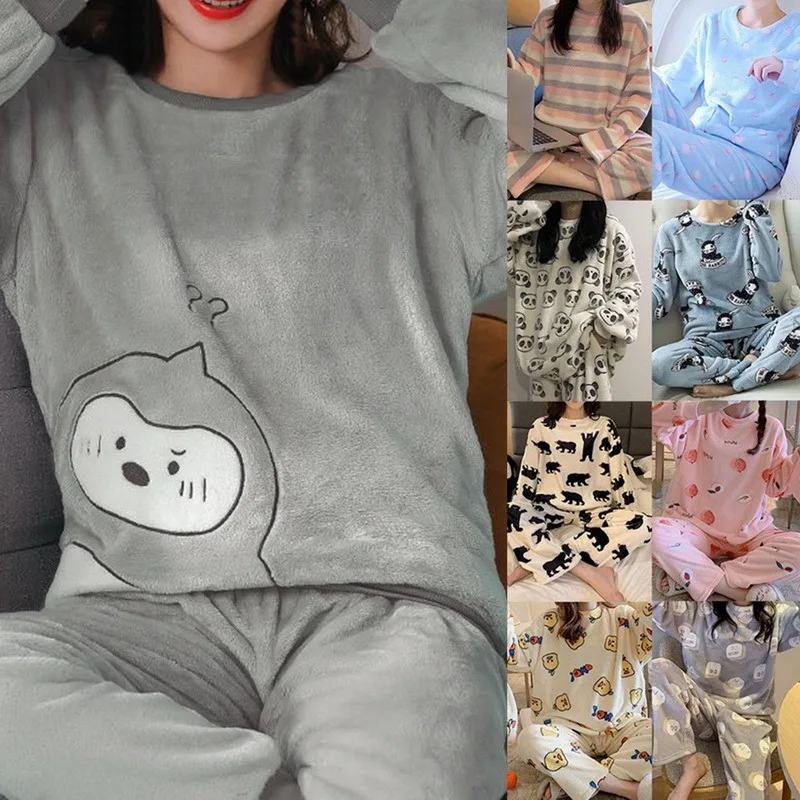 Зимняя Пижама 2021, Женская Корейская Пижама, милый мультяшный флан...