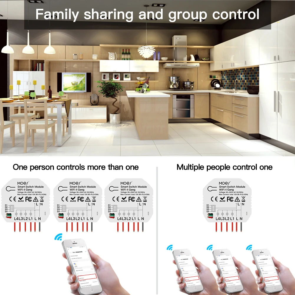 2,4-двойные выключатели поддерживает как особые требования к встретиться и новое обновление; Может использоваться в качестве 1-way или 2-полосная цепью повторного включения (2 переключателя управления 1 светильник); просто подключите к 1 из 2 переключателей и преобразуйте подключенное устройство в умный (Для детей возрастом от 2 way цепи); Мультиконтроль ассоциации используется как прежде всего каких-либо Gang кнопку, чтобы ваш Интеллектуальный переключатель Wi-Fi в приложение smart Life для другого интеллигентая (ый) управления.