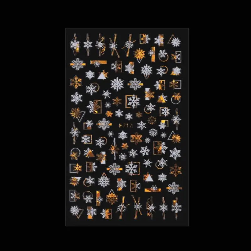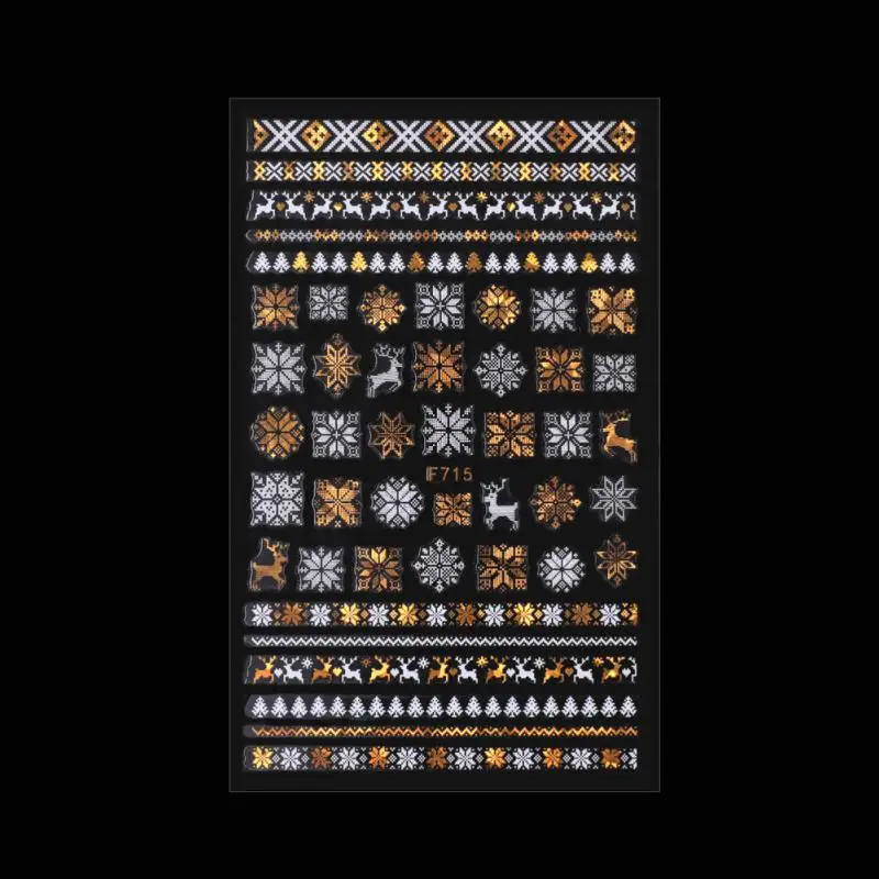 Золотые Рождественские снежинки 3D наклейки для ногтей блестящие переливающиеся серебряные Рождественские елки Лось Олень Переводные слайдеры зимняя фотография
