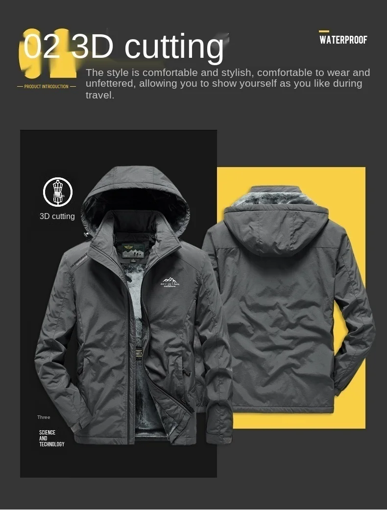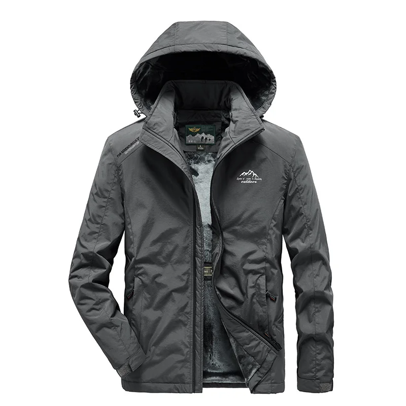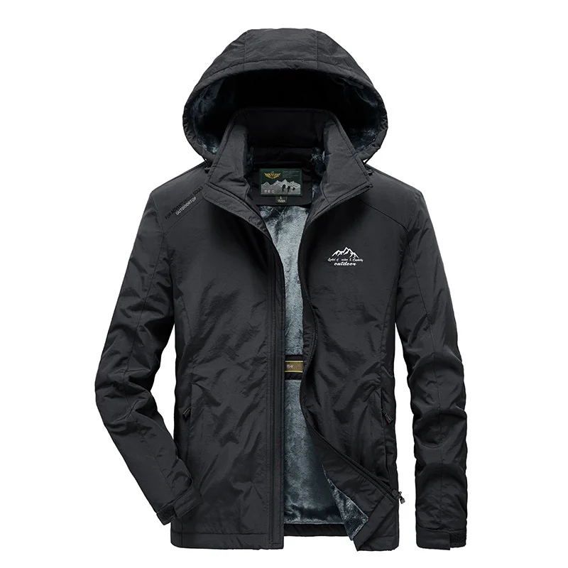 Осенне-зимние Новые мужские куртки плюс бархатная утепленная свободная ветрозащитная Повседневная непромокаемая куртка большого размера