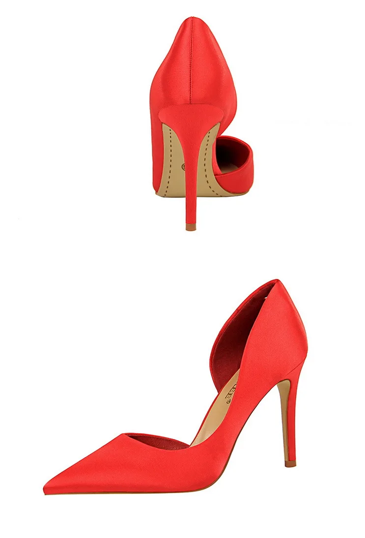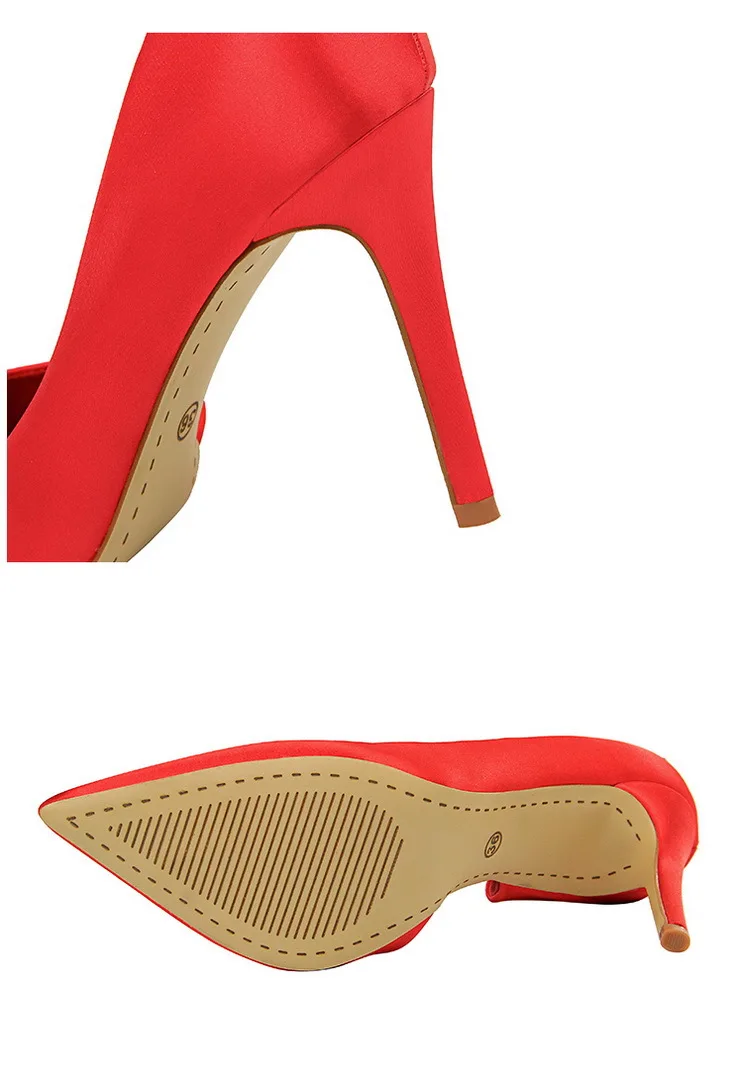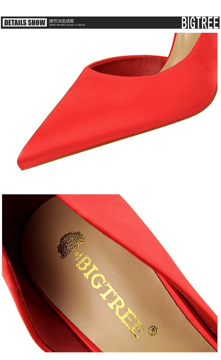 Туфли-лодочки BIGTREE женские, шелковые туфли на высоком каблуке-шпильке, Офисная вечерние, цвет красныйзеленыйсинийчерный