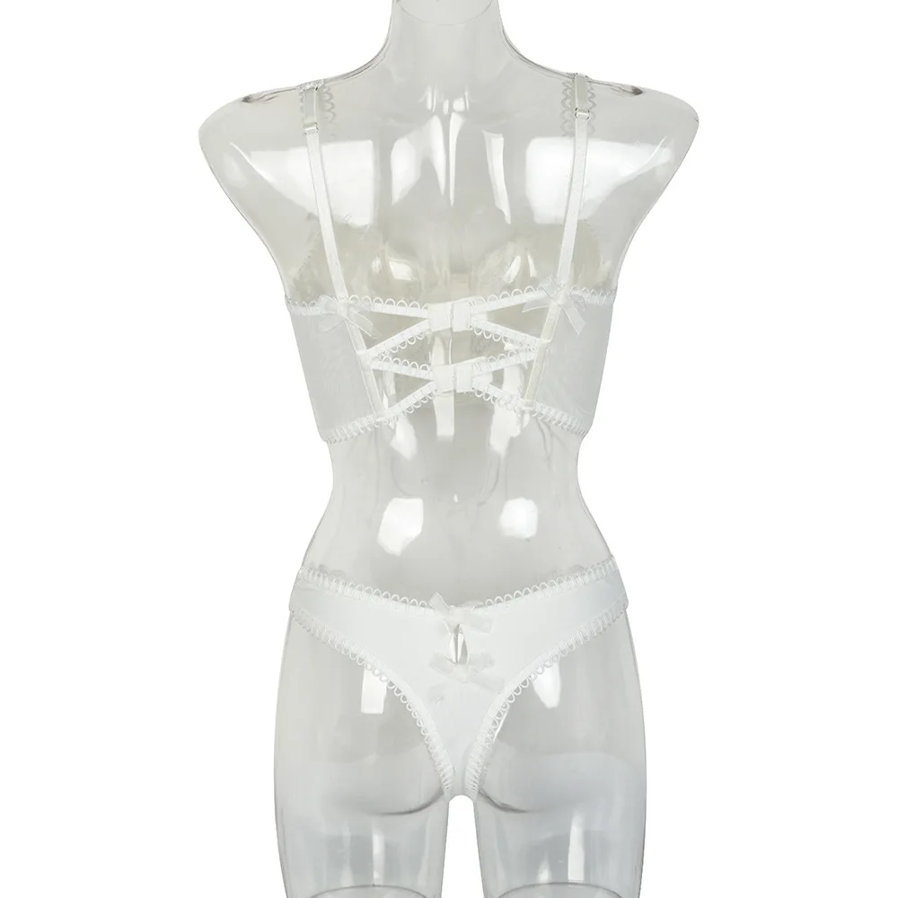 Комплект кружевного нижнего белья Yimunancy из 2 предметов, женский топ на бретелях-спагетти и трусики, комплект нижнего белья, белый сексуальный комплект нижнего белья