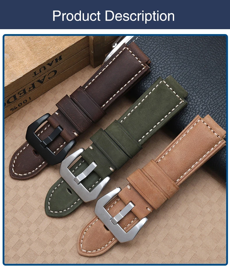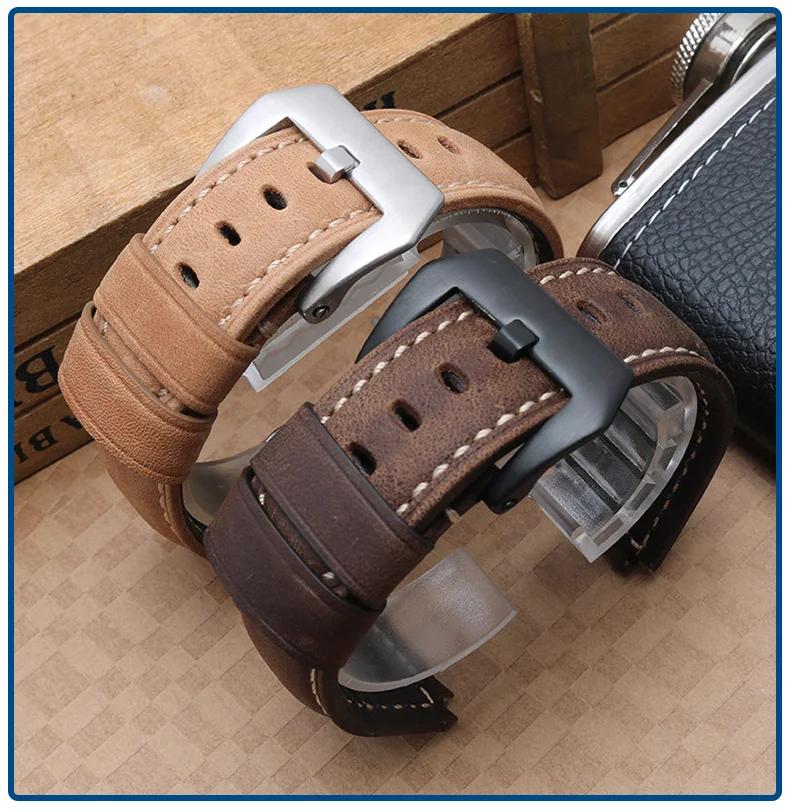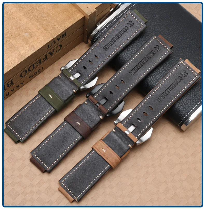 Ремешок для часов из коровьей кожи, черный мужской ремешок 24*16 мм