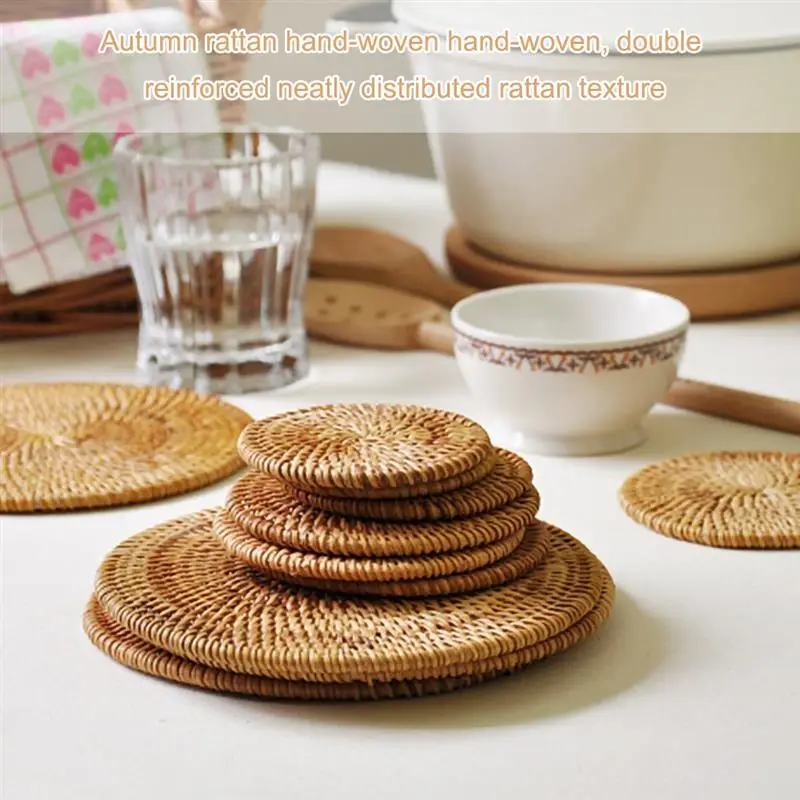 81013 см ротанговая круглая чашка, коврики, кружка для напитков, нескользящая жаростойкая подставка для чашек, нескользящая чашка, коврик для стола, столовые приборы