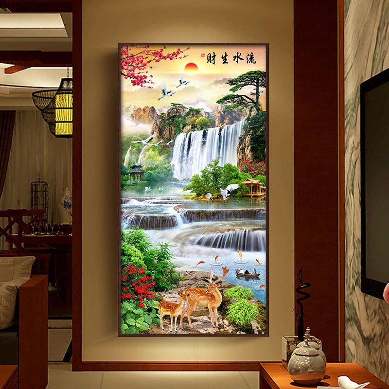 QIANZEHUI, алмазная 5D Вышивка своими руками, круглые алмазы, Зарабатывайте деньги, бегущая вода, полная Стразы 5D алмазная живопись, вышивка крестиком