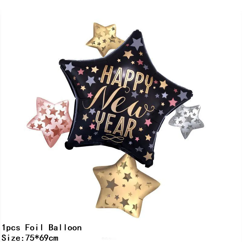 ❤Прекрасный дизайн: Эти новогодние воздушные шары из фольги спроектированы в виде звезд, шляп, бутылки шампанского, прекрасный внешний вид сделает ваши вечерние шары более забавными, создайте атмосферу счастливого Нового года и поделитесь счастьем с семьей и друзьями.