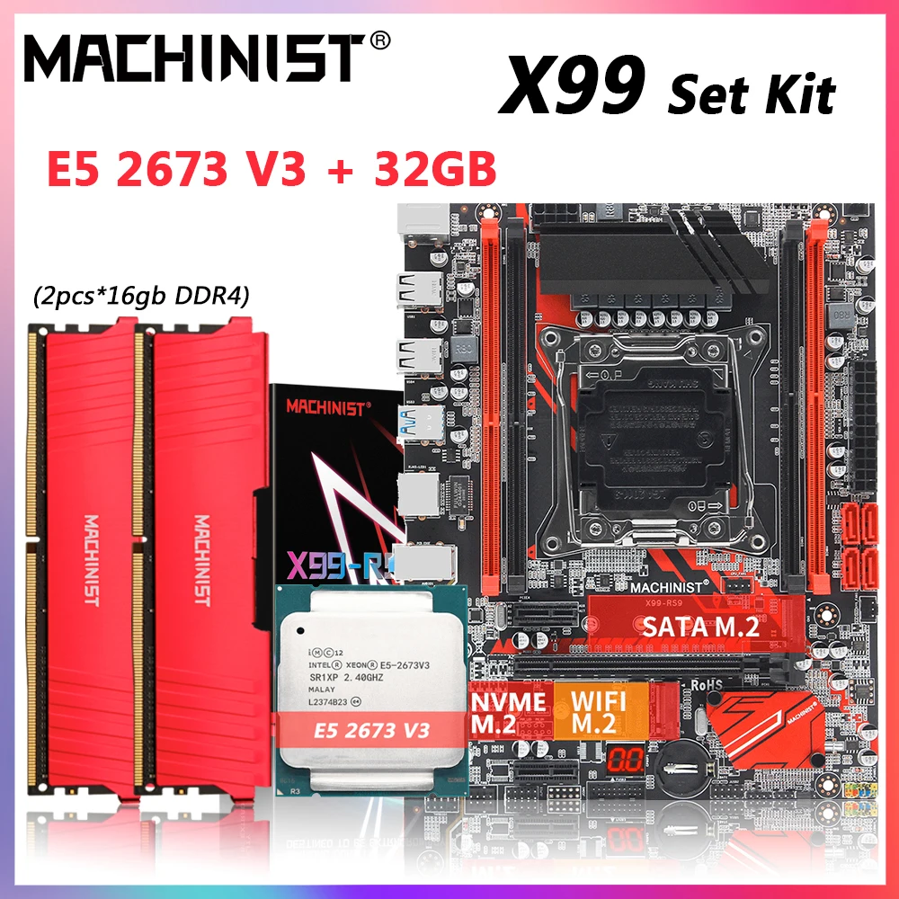 Комплект материнской платы Machinist X99 с процессором Xeon E5 2673 V3 2*16 ГБ = 32 Гб DDR4 ОЗУ комплект памяти LGA 2011-3
