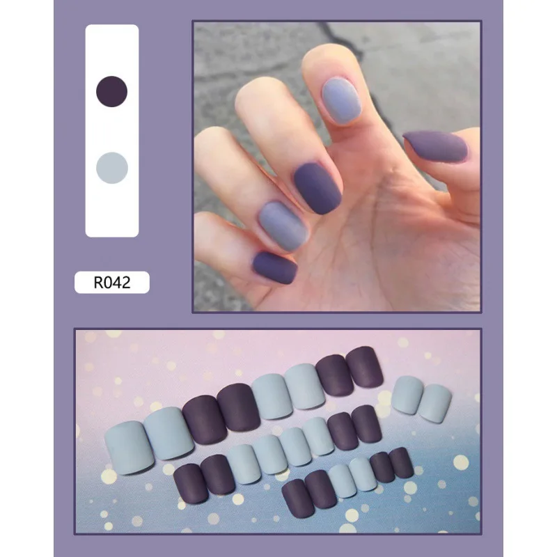 Синие гробные накладные ногти, Короткие матовые искусственные накла...